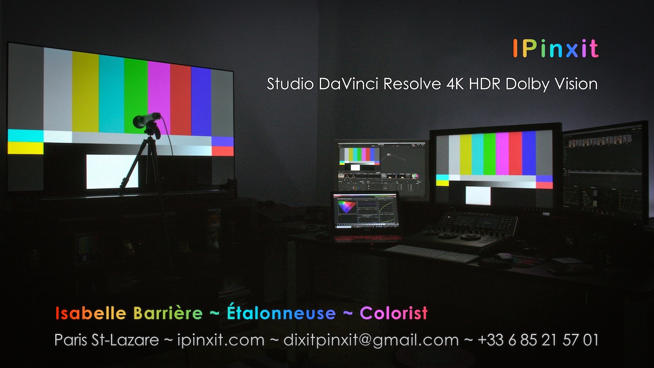 Isabelle Barrière – Digital Colorist Dolby Vision Certified Professional DaVinci Resolve Studio – Paris, France dixitpinxitATgmailDOTcom +33 6 85 21 57 01 videos: Eizo monitors csi: Colorist Society International film restoration: Cité de Mémoire
